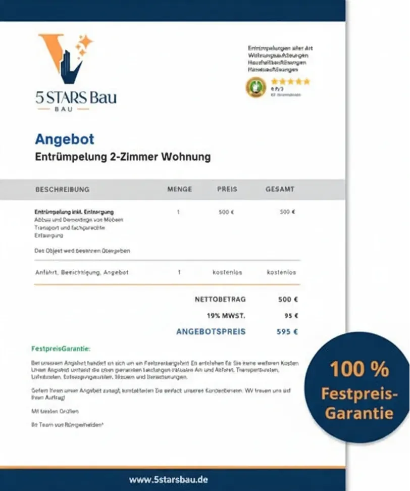 Sie erhalten einen garantierten Festpreis. Es kommen keine weiteren Kosten auf Sie zu!